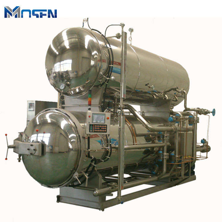 我司生產(chǎn)的全自動雙層水浴殺菌鍋分為上下兩個罐,上為熱水預(yù)熱罐,下為殺菌鍋,上罐蒸汽預(yù)熱可控溫,軟化水殺菌后可循環(huán)利用,節(jié)約能源和水源.