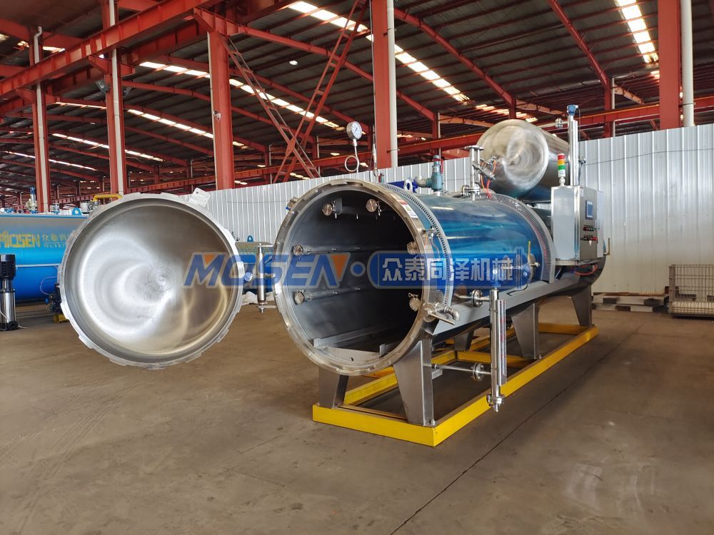殺菌鍋設(shè)備主要用于肉制品、水果罐頭、奶制品、豆制品、農(nóng)副產(chǎn)品、飲料制品、蛋制品、水產(chǎn)品、八寶粥、調(diào)味品、食用菌、寵物食品、湯和熟食以及果蔬等食品的殺菌。殺菌鍋由鍋體、鍋蓋、開啟裝置、鎖緊鍥塊、安全聯(lián)鎖裝置、軌道、殺菌盤、蒸汽噴管及若干管口、保溫層、熱水罐等組成。